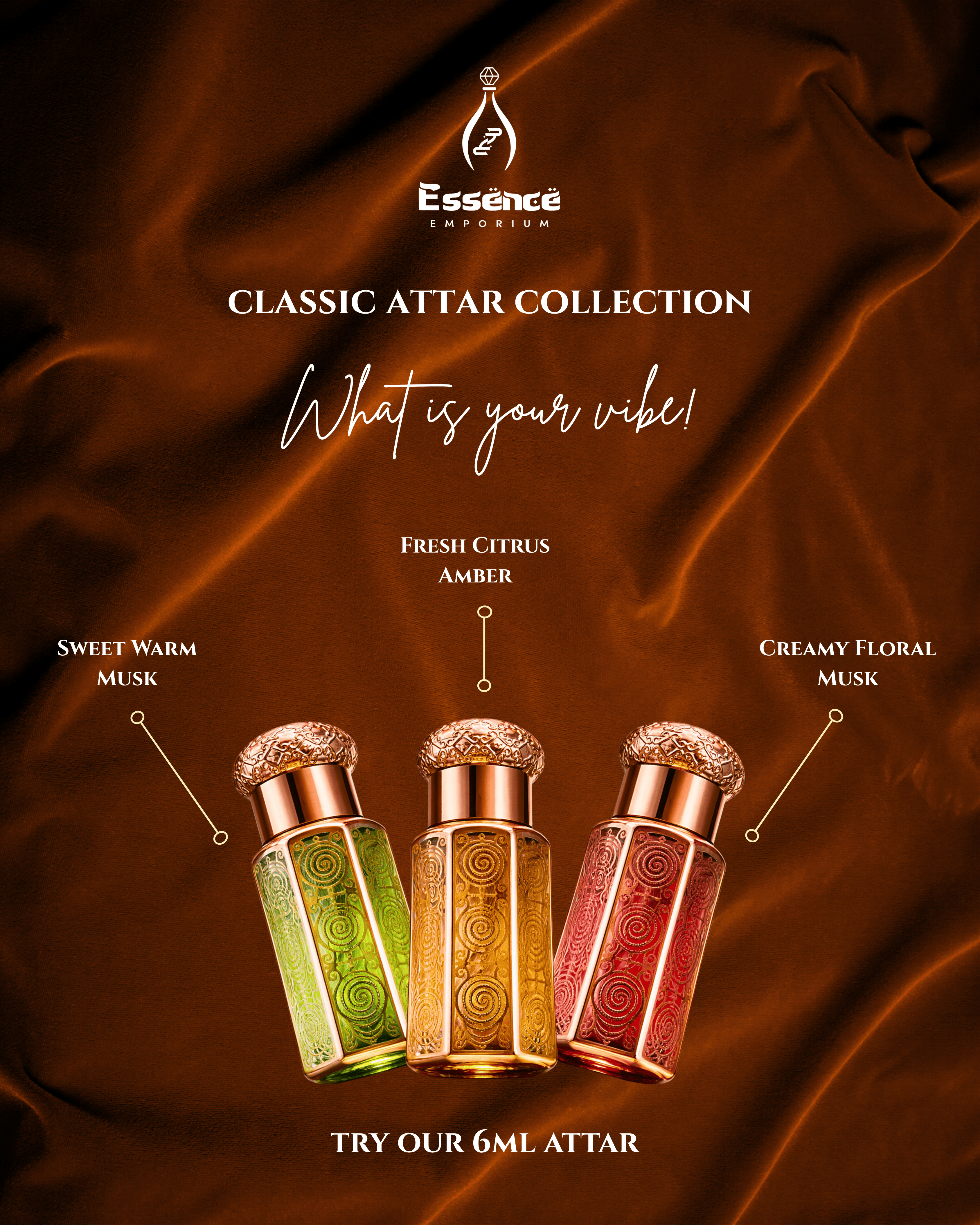 Essence Emporium brings you the Classic Attar Collection — a refined selection of timeless fragrances crafted for everyday luxury. Blending tradition with modern elegance, each attar is designed to offer long-lasting, alcohol-free fragrance that complements every mood and occasion.